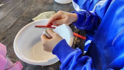勾玉づくりにチャレンジしています。