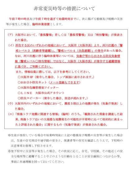 登校前までの対応は、「非常変災時の措置について」という文字をクリックしてご確認ください。