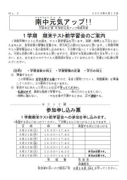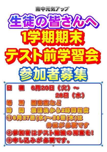 6月20日(火)から1学期期末テスト前学習会が始まります。