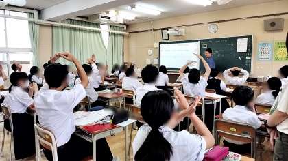 1年2組は英語です。「できる」、「できない」 の文章を勉強しています。