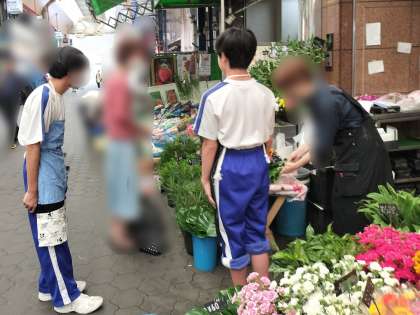 黒門市場の花とみ様で体験学習をさせていただいています。