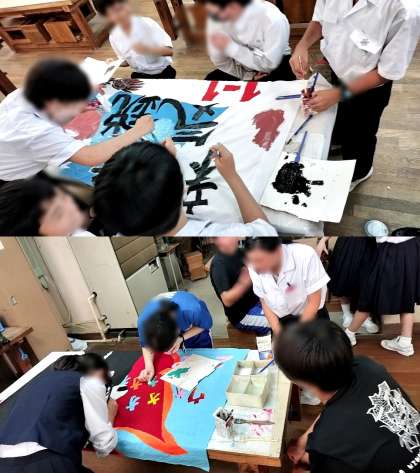 学級旗の作成や、放課後学習会、そして部活動と子どもたちが活動しています。