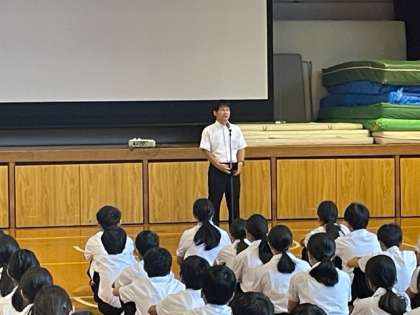 明日から始まる夏休みを充実したものにするために、校長先生から1学期の4ヶ月間よく頑張ってくれたこと。夏休みは1学期の振り返り、1学期で見つけた課題に取り組んでおくことのお話がありました。