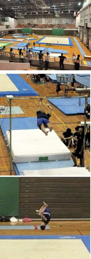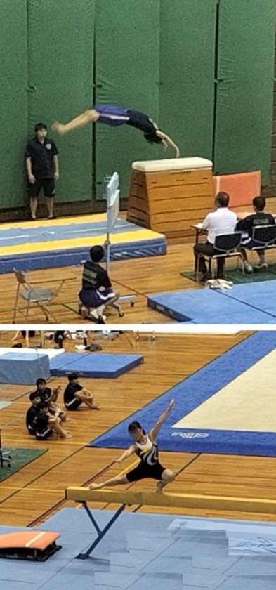 男子は鉄棒、ゆか、跳馬の3種目、女子は平均台、ゆか、跳馬の3種目が行われました。