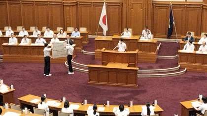 今日、区役所にある市会本会議場で、子ども市会がありました。