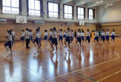 3時間目、2年生は体育大会の練習です。きれいに揃った行進ができています。