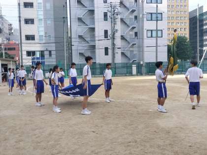 放課後になり、体育委員や生徒会、放送係、などの生徒が集まり、入場行進の練習をしています。