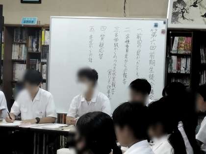 各委員からの報告や、各学級からの現状報告などをもとに話し合いを進めています。