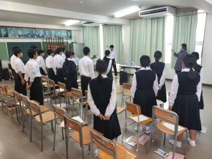 1時間目、1年2組は音楽で、合唱の練習です。練習を始めた頃に比べると格段に上手になっています。