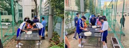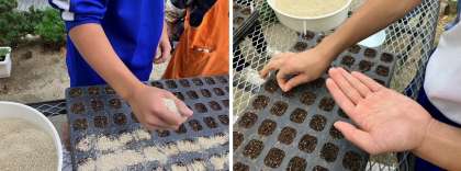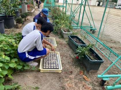 先週の金曜日に区役所から担当の方々にお越しいただき、生徒会の子どもたちが中心になって種をまきました。