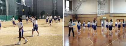 1年生は体育です、男子はハンドボール、女子はバスケットボールです。