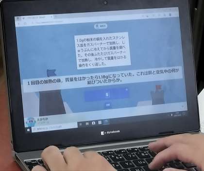 化学反応の学習をしたあと、ゲーム形式で復習をしています。