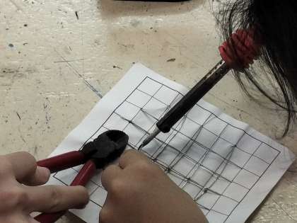 はんだ付けの練習をしています。