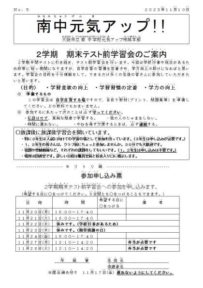 詳しくはポスター、南中元気アップ通信5号を見てください。