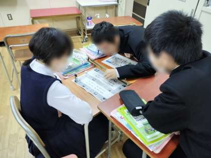 班ごとに、スゴロクのようなゲームをしながら、サイコロの目に応じた英文を話すアクティビティをしています。