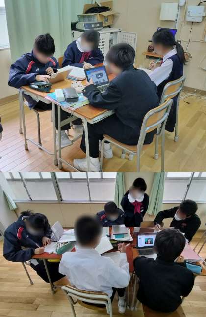1時間目、1年1組は英語です。プレゼンの資料をまとめています。