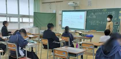 2年2組は、数学です。鋭角や鈍角、二等辺三角形の定理などを学んでいます。