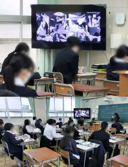 3年1組は、美術で鑑賞の授業です。