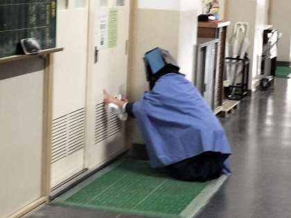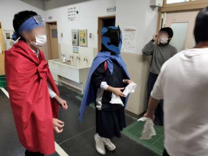 4時間目、特別支援学級の活動で、ヒーローたちが清掃活動をしてくれました。
