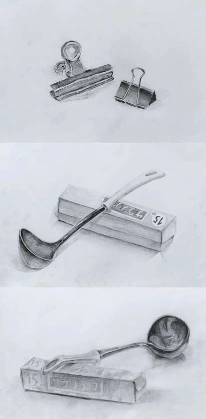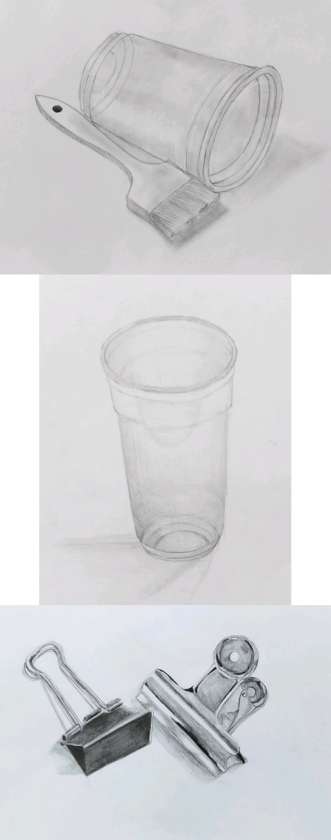 高校受験の実技試験対策で、練習のために3人の生徒が、描いた作品です。