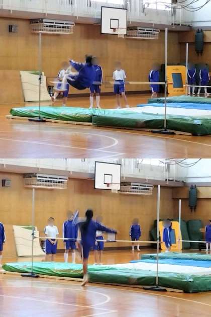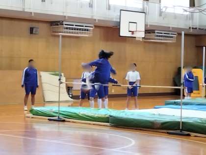 3時間目、2年生は体育です。男子はハードル走、女子は走り高とびです。