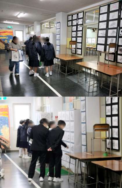 3年生が、明日から始まる「作品展示会」の準備をしてくれています。