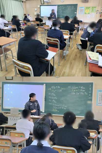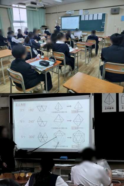 2時間目、1年1組は数学です。正多面体について学習しています。