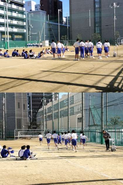 4時間目、1年生は体育です。今日は男子が1500メートル走、女子が1000メートル走です。男子はトラック10周になります!