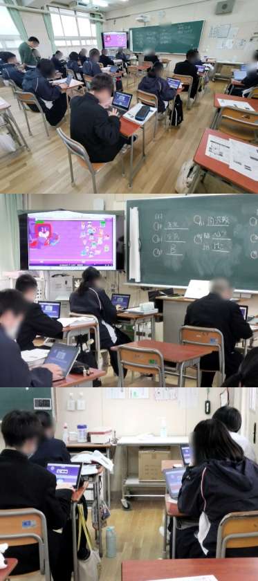 2年1組は理科です。「直流と交流」について学習しています。ゲーム形式で復習しています!