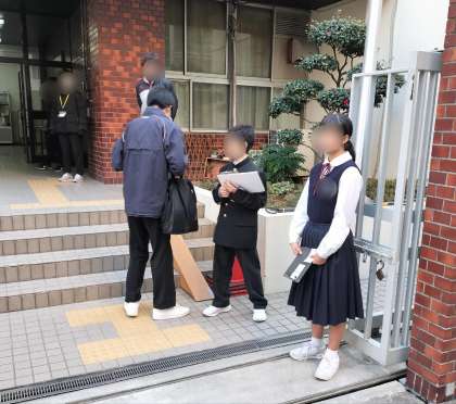 生活委員の生徒も毎朝、正門に立ってくれています。