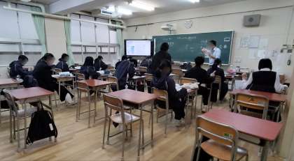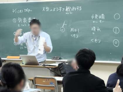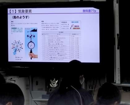1時間目、2年1組は理科です。気象の要素について学習しています。