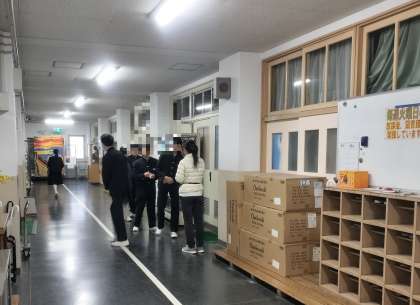 休みの間に私立高校の入試結果が届いた生徒が、担任に報告しています。