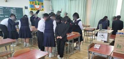 3時間目、1年2組は国語です。今日の5,6時間目に実施する、百人一首大会の練習です。