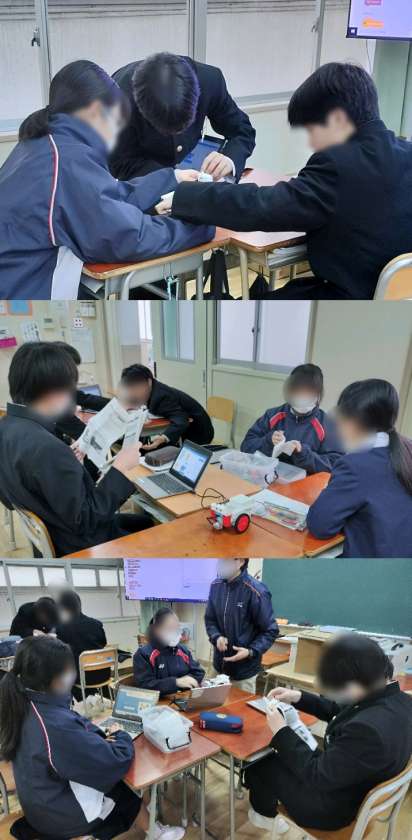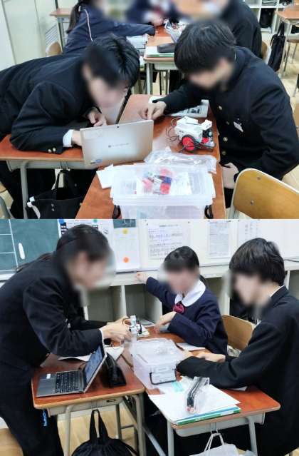 パソコンに入力した指示どおりにロボットが動くように取り組んでいます。