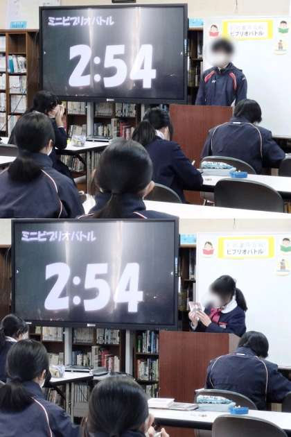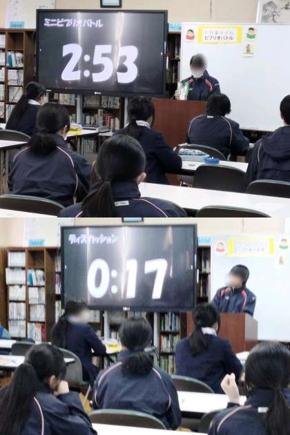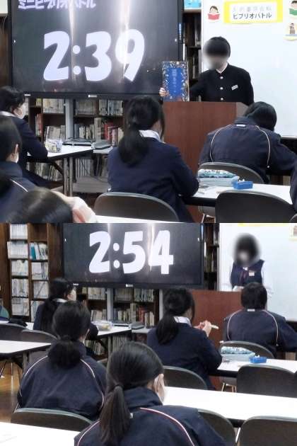 1年生より1分長い3分で書評をまとめ、興味を引くように発表しています。