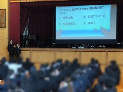 画像は、音楽部、パソコン部、美術部です。