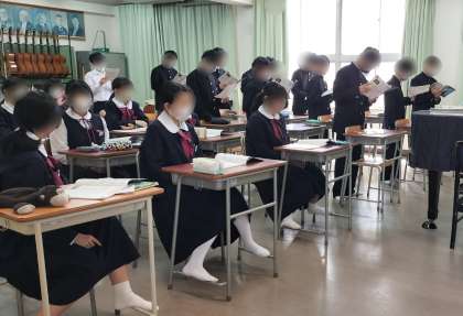 2時間目、3年1組は音楽です。 オリエンテーションです。