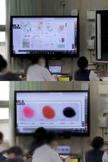 細胞の観察に使う3種類の「染色液」の名前が、ややこしいので生徒たちは、ため息をついていました。