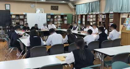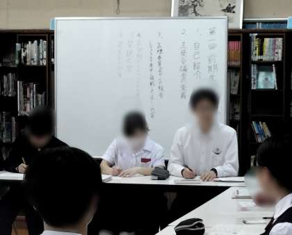 生徒会メンバーと各クラスの代表、各種委員会の代表が集まって、クラスや学校の課題について話し合っています。