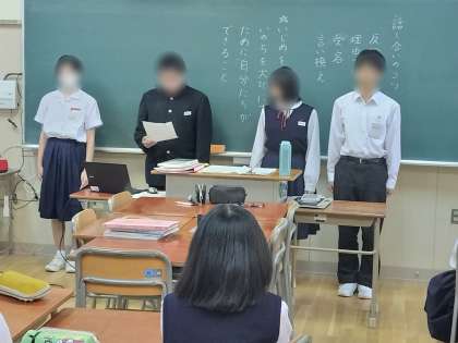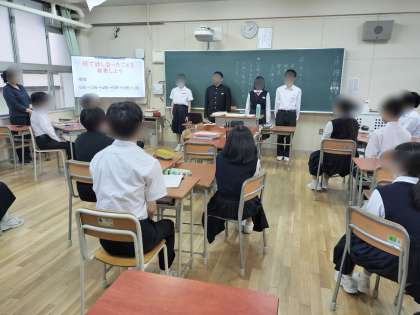 5時間目、今度は1組が、いじめをなくすため、いのちを大切にするために、自分たちができることを話し合い、発表しています。