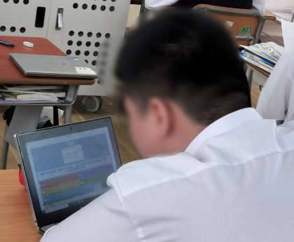 「植物のなかまわけ」について学習し、習ったことの復習をパソコンでしています。