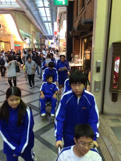 写真は本日56時間目に行っている車椅子体験の様子です。毎年人権学習の一環でやっています。事前事後学習もきっちりやります。ご協力いただいている長堀橋駅、心斎橋駅、日本橋駅、ユニクロ心斎橋店、大阪なんばワシントンホテルプラザ、島之内図書館、またご通行中の皆様、どうもありがとうございます。