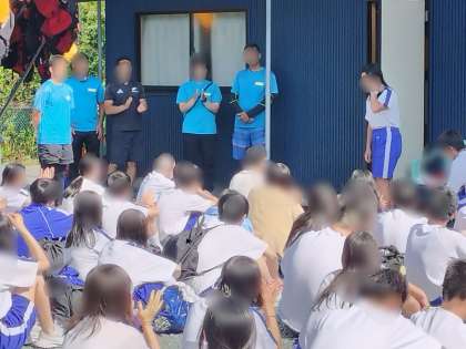 ラフティングを終わり、インストラクターの皆さんにお礼をして、今日の宿泊先のホテルかずら橋に向かっています。