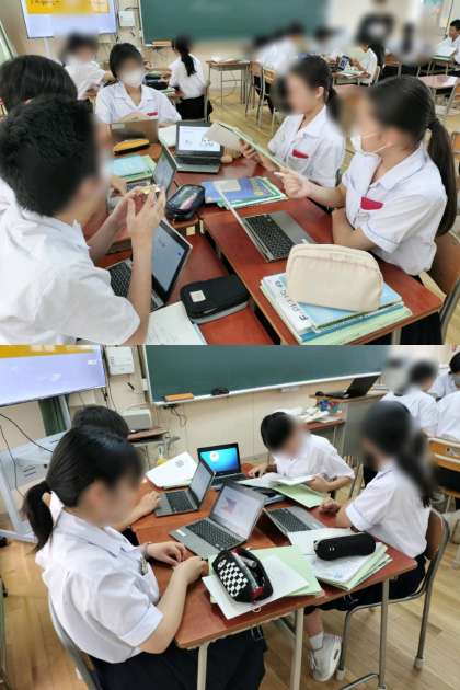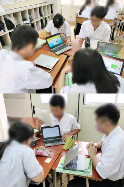 パソコンで作成した資料を元に、一人づつ、自分の将来についてスピーチしています。