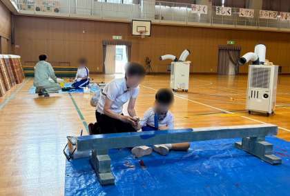 南小学校では、ペンキ塗りや小学生の学習支援の体験などをさせていただきました。
