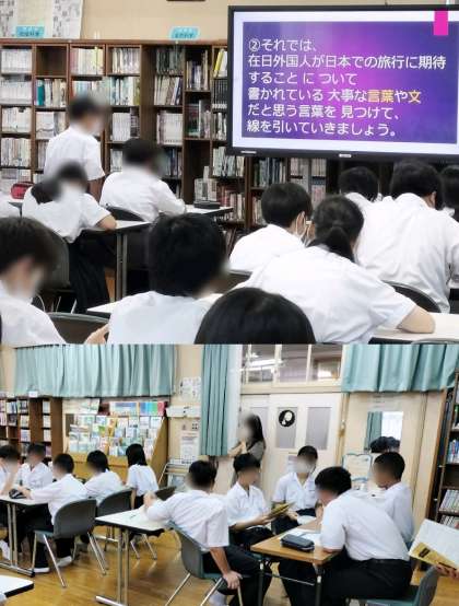 1時間目、1年生では「総合的読解力育成カリキュラム」の教材を使って研究授業を行いました。