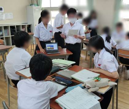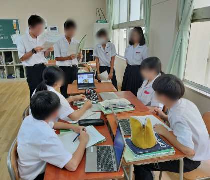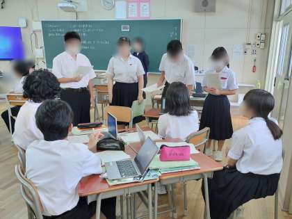 夏休みに行くとしたらどこの国に行きたいかを、考えて作ったスピーチを発表しています。