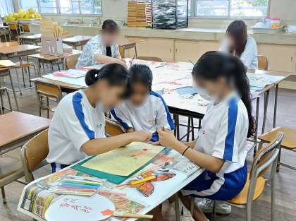 美術部は今日は『サンドアート』に取り組んでいます。 ちぎり絵のほうは先生がしています。