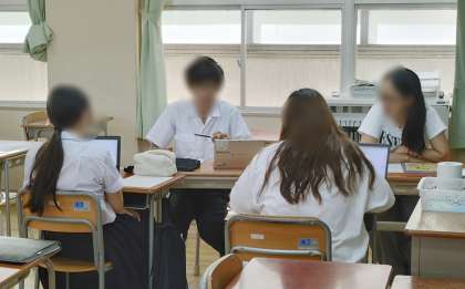 英語の先生とC-NETの先生に指導していただきながら、3年生の2人が英語のスピーチコンテストにむけて活動しています。