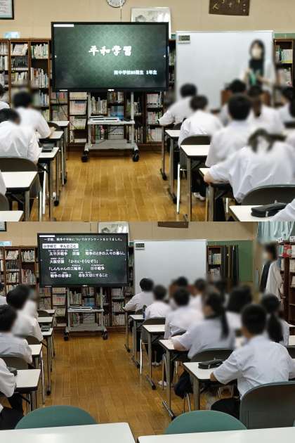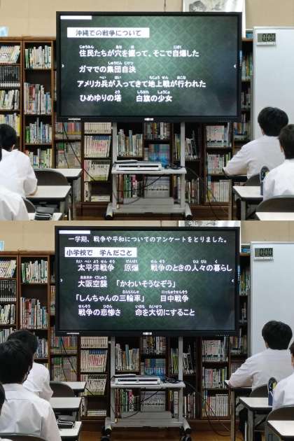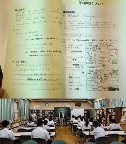 お休みから復帰された先生の紹介から始まり、沖縄戦について学習しています。